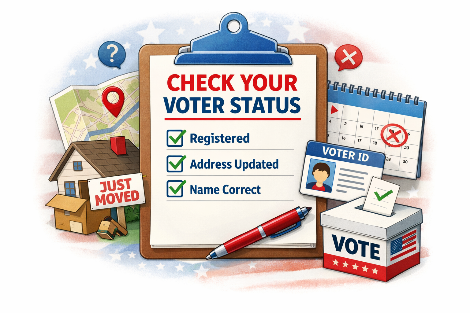 Voter registration records can change when you move, change your name, or don’t vote for multiple cycles (rules vary by state). Checking your status is a quick way to confirm you’re on file where you live now.